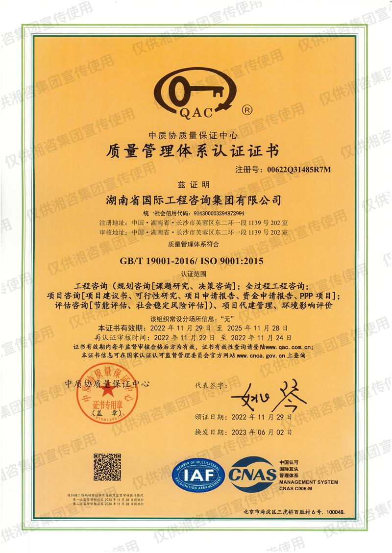 質(zhì)量管理體系認證證書