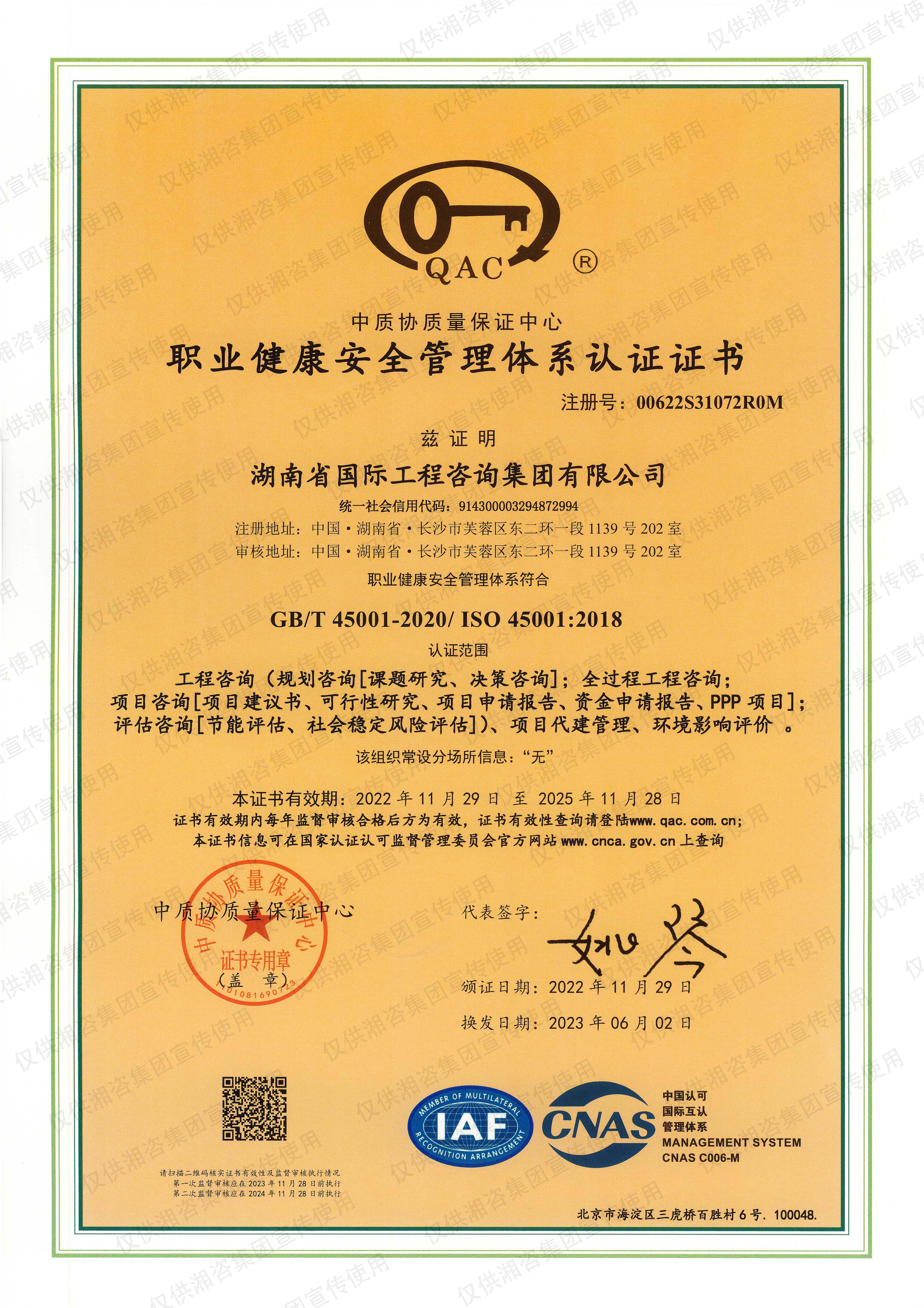職業(yè)健康安全管理體系認證證書