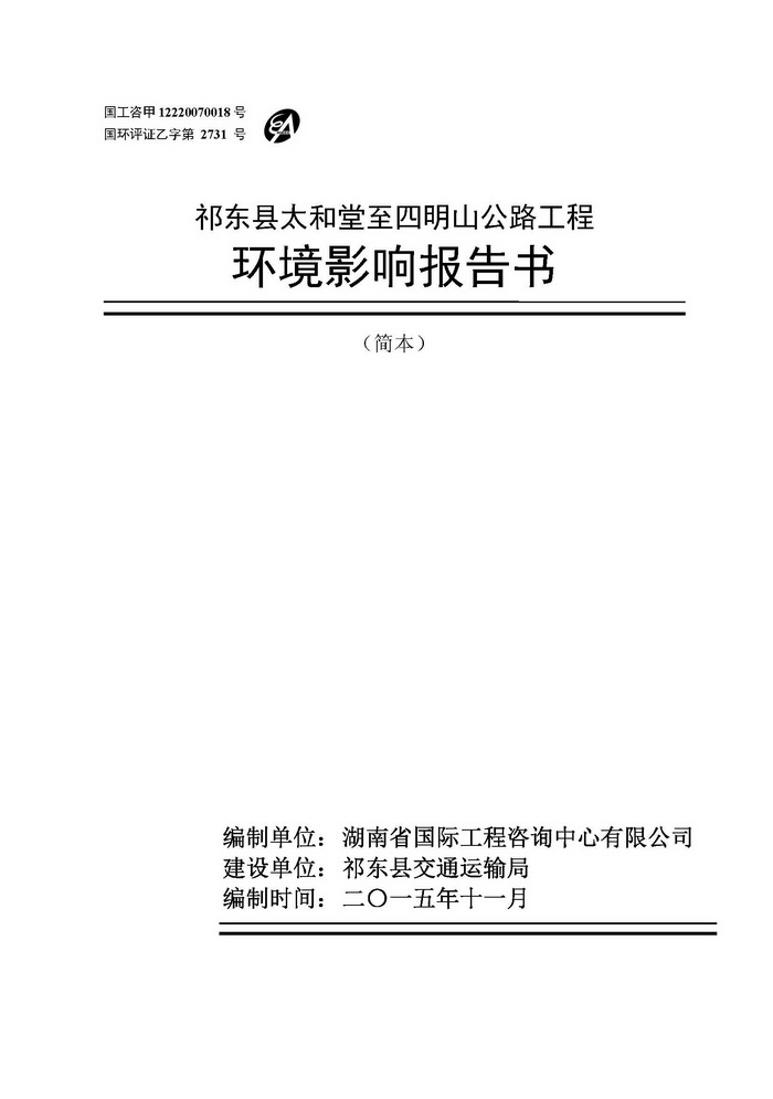 祁東縣太和堂至四明山公路工程環(huán)境影響報(bào)告書(shū)