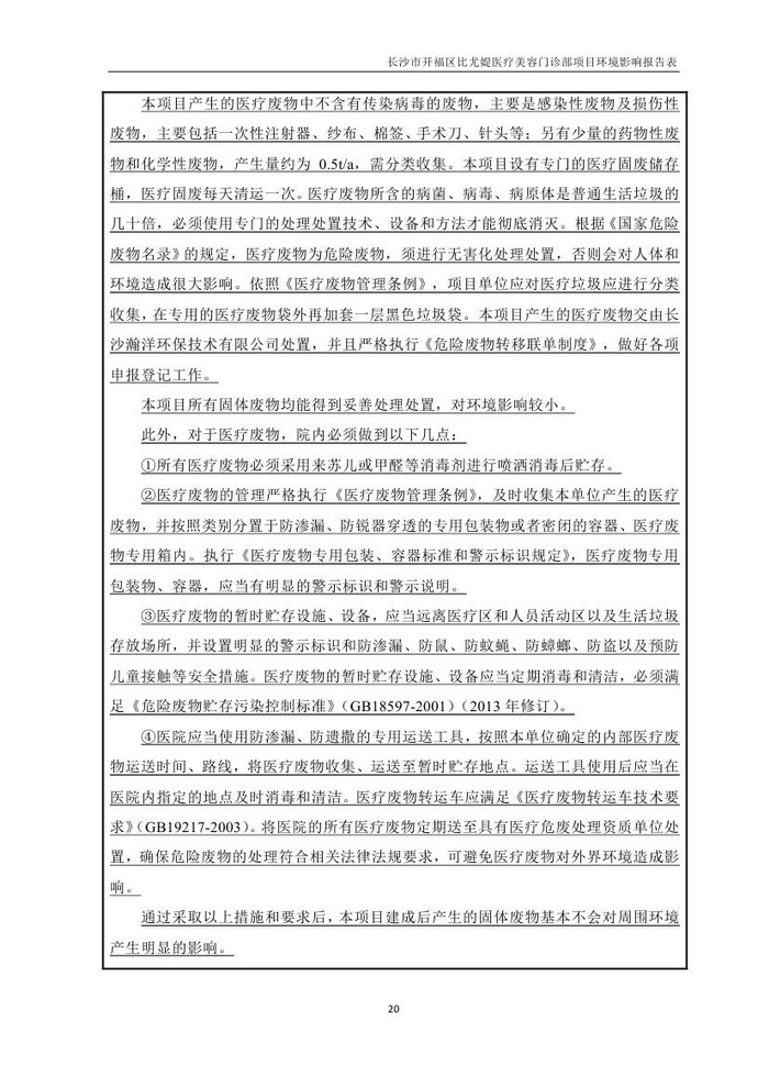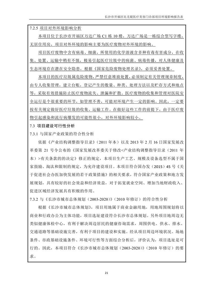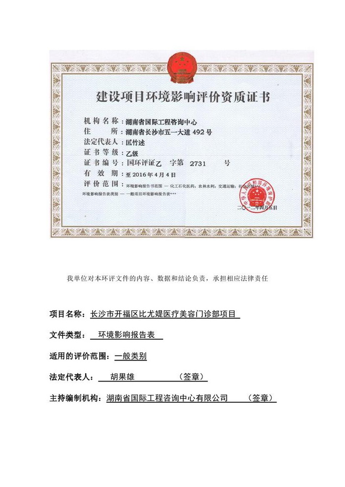 長沙市開福區(qū)比尤媞醫(yī)療美容門診部項(xiàng)目環(huán)評報(bào)告表(公示)