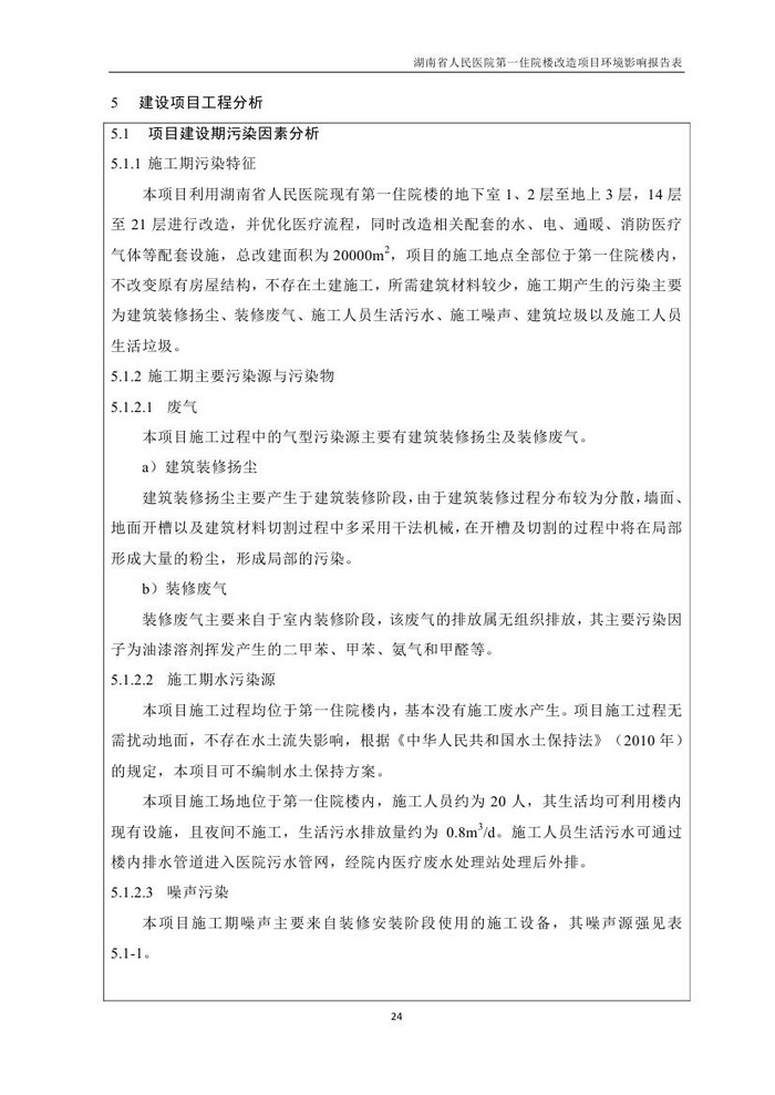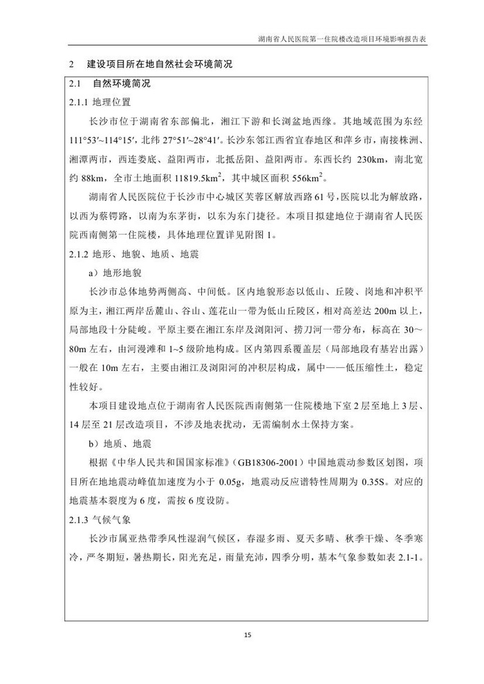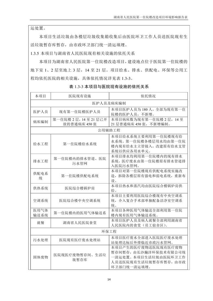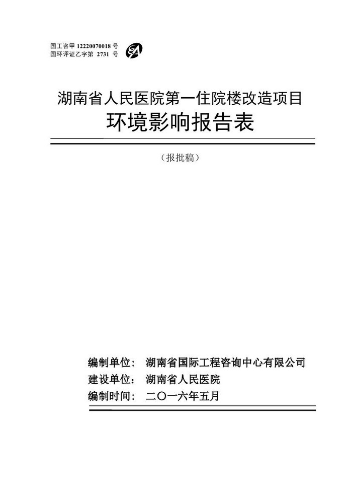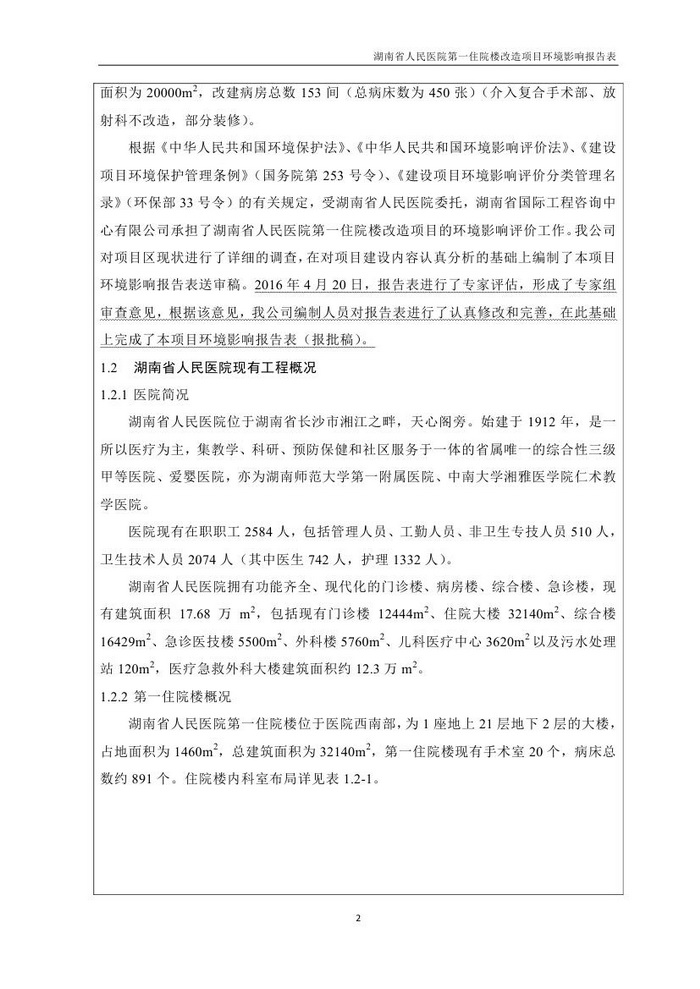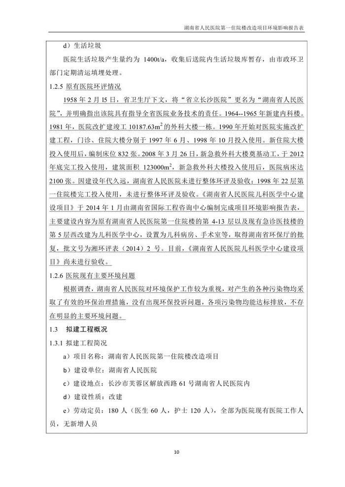 湖南省人民醫(yī)院第一住院樓改造項(xiàng)目環(huán)評報(bào)告表