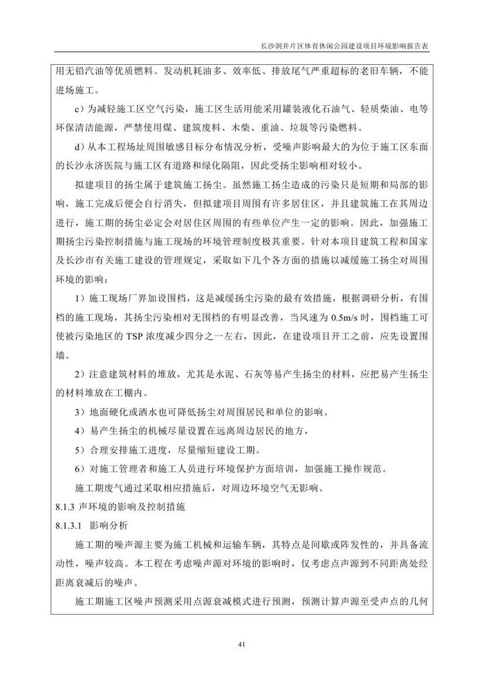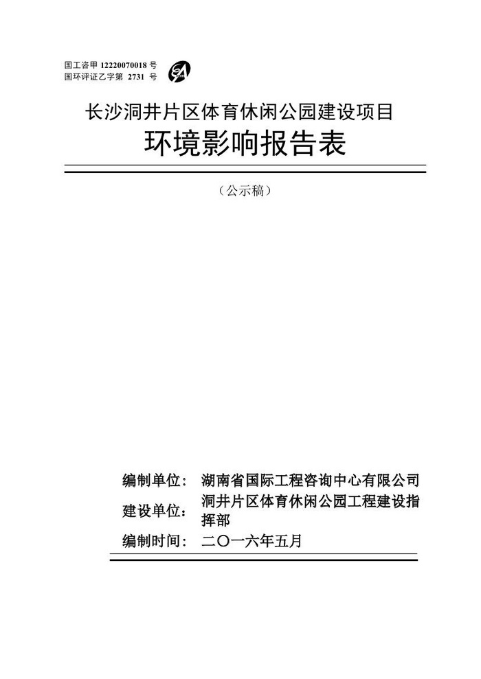 長沙洞井片區(qū)體育休閑公園建設項目環(huán)境影響報告表(公示稿)