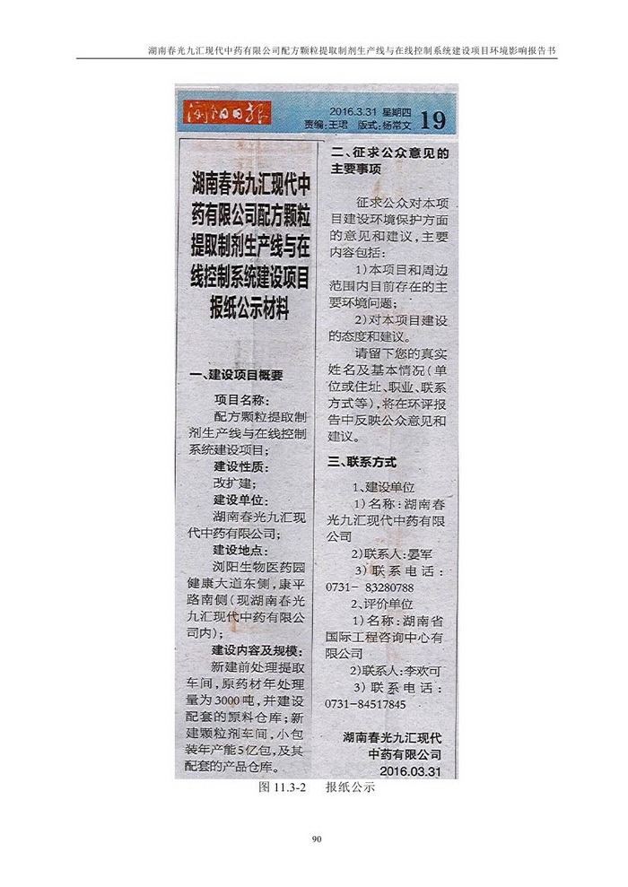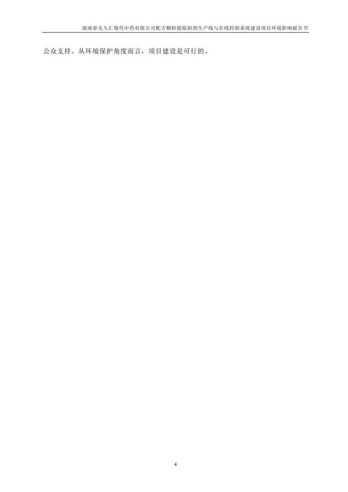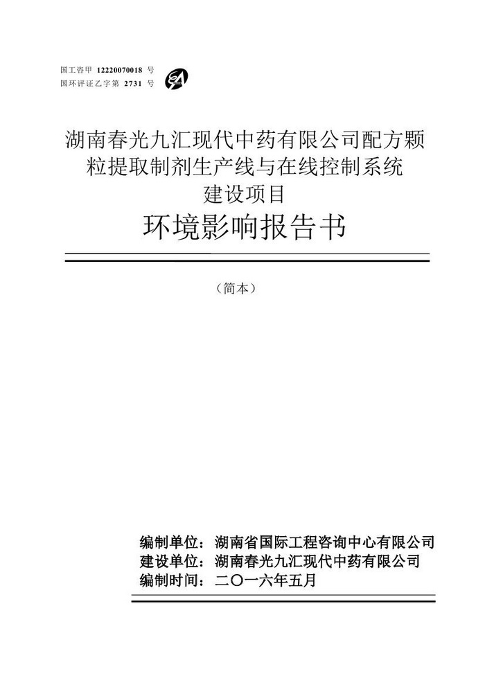 湖南春光九匯現(xiàn)代中藥有限公司配方顆粒提取制劑生產(chǎn)線與在線控制系統(tǒng)建設(shè)項(xiàng)目環(huán)評(簡本)