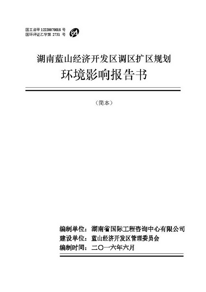 湖南藍(lán)山經(jīng)濟(jì)開發(fā)區(qū)調(diào)區(qū)擴(kuò)區(qū)規(guī)劃環(huán)評簡本公示