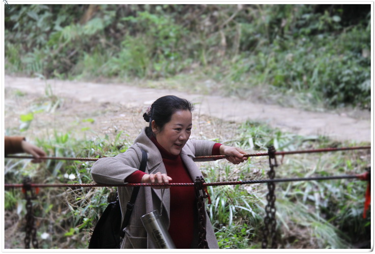 本次春游第一站為皇龍大峽谷。峽谷內(nèi),綠樹(shù)成蔭,溪水潺潺,入眼滿是原生態(tài)植被山林。沿著山路,景區(qū)內(nèi)精心設(shè)計(jì)的浮動(dòng)梅花樁、鐵索橋、壁虎網(wǎng)等道路并沒(méi)有困住湘咨姑娘們向上的腳步。大家不懼挑戰(zhàn)之險(xiǎn),不畏攀登之苦,努力跨越沿途障礙,收獲了諸多樂(lè)趣。