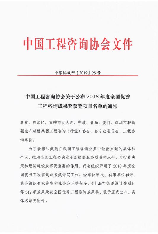 12月27日,中國工程咨詢協(xié)會官網(wǎng)公布了“2018年度全國優(yōu)秀工程咨詢成果獎獲獎項(xiàng)目名單”,省咨詢公司共有3項(xiàng)工程咨詢成果榮獲全國優(yōu)秀工程咨詢成果獎。