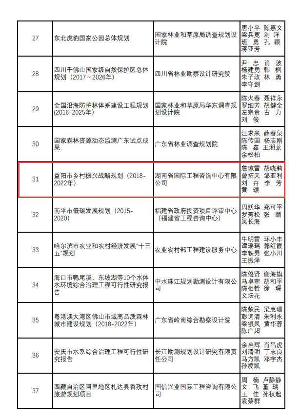 其中,農(nóng)業(yè)與湘西開發(fā)咨詢部完成的《益陽市鄉(xiāng)村振興戰(zhàn)略規(guī)劃(2018-2022年)》獲二等獎;生態(tài)規(guī)劃咨詢部完成的《湖南省大通湖流域水環(huán)境綜合治理與可持續(xù)發(fā)展專題研究報告》和《湖南省株洲市低碳城市試點(diǎn)實(shí)施方案》獲三等獎。