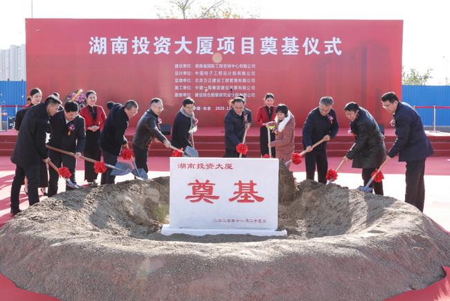 現(xiàn)場禮花齊放,汽笛長鳴,儀式進入奠基培土環(huán)節(jié)。在熱鬧喜慶的氛圍中,各位領(lǐng)導(dǎo)及嘉賓為項目奠基。所有人滿懷著祝福和期待,共同見證這一輝煌時刻。奠基儀式的成功舉行,標志著項目將進入全面建設(shè)的新階段,標志著湖南與北京即將增加一座新的溝通交流橋梁和一個更高的合作發(fā)展平臺。湖南投資大廈項目建成后,將加強湖南省直部門和中央部委、湖南省屬國有企業(yè)和中央企業(yè)的溝通聯(lián)系,對促進湖南省經(jīng)濟社會高質(zhì)量發(fā)展將起到積極的作用。