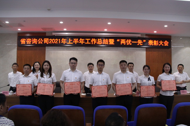 6月30日上午,省咨詢公司召開2021年上半年工作總結(jié)暨“兩優(yōu)一先”表彰大會(huì),公司領(lǐng)導(dǎo)班子成員、公司本部全體干部職工和分子公司代表參加會(huì)議。會(huì)議由公司黨委書記、董事長詹瓊雷主持。