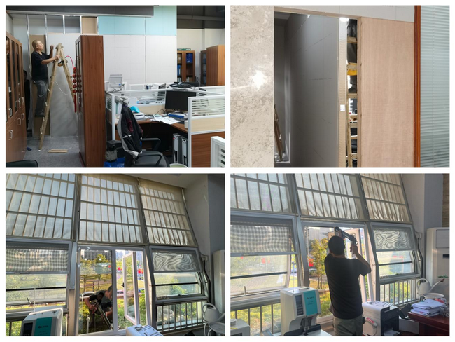 圖1 自查自糾整改現場:將配電間與辦公室隔開并設置單獨防火通道、在辦公區(qū)域增設安全逃生窗口