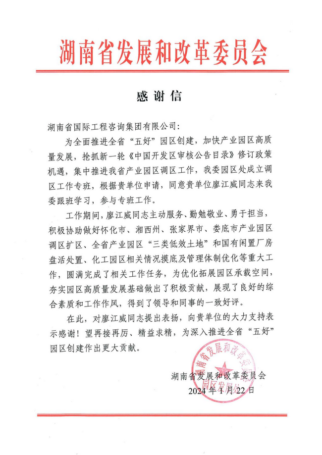 感謝信的背后,飽含著湘咨人專業(yè)敬業(yè)、高效負(fù)責(zé)、勇于擔(dān)當(dāng)?shù)闹腔酆推橇?,既是?duì)湘咨集團(tuán)的充分信賴與認(rèn)可,更是鼓舞湘咨人踔厲奮發(fā)、勇往直前的強(qiáng)大動(dòng)力。