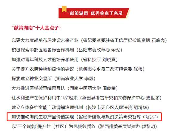 “獻(xiàn)策湖南”金點(diǎn)子征集活動(dòng)是省委安排部署、省委社會(huì)工作部牽頭負(fù)責(zé)的一項(xiàng)人民建議征集工作?!跋孀杉瘓F(tuán)”作為省級(jí)“智囊團(tuán)”積極參與、踴躍獻(xiàn)策,撰寫的《加快推動(dòng)湖南生······